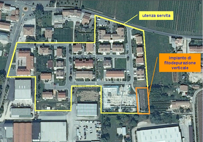 Localizzazione impianto e utenza servita 300 abitanti equivalenti Caonada di Montebelluna (TV) |