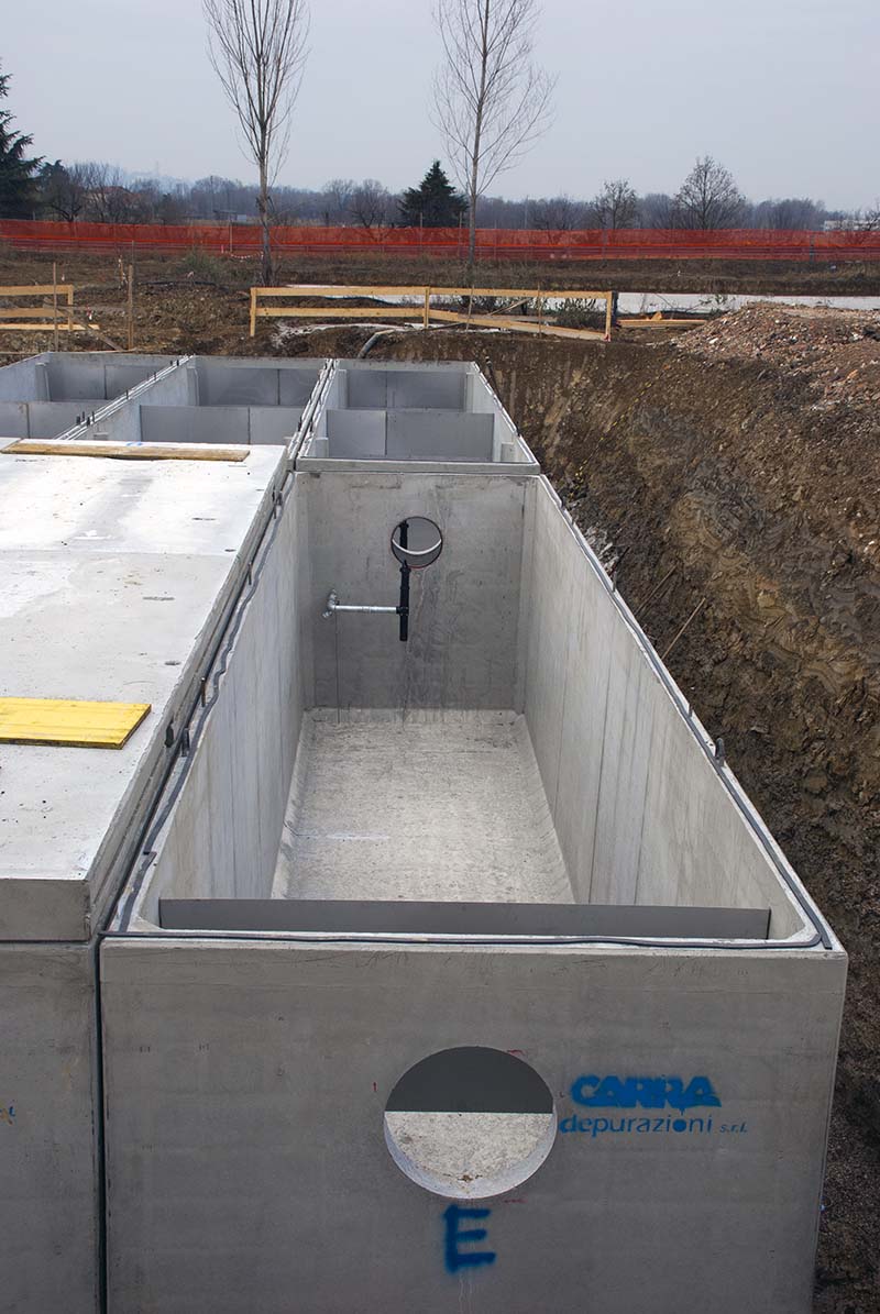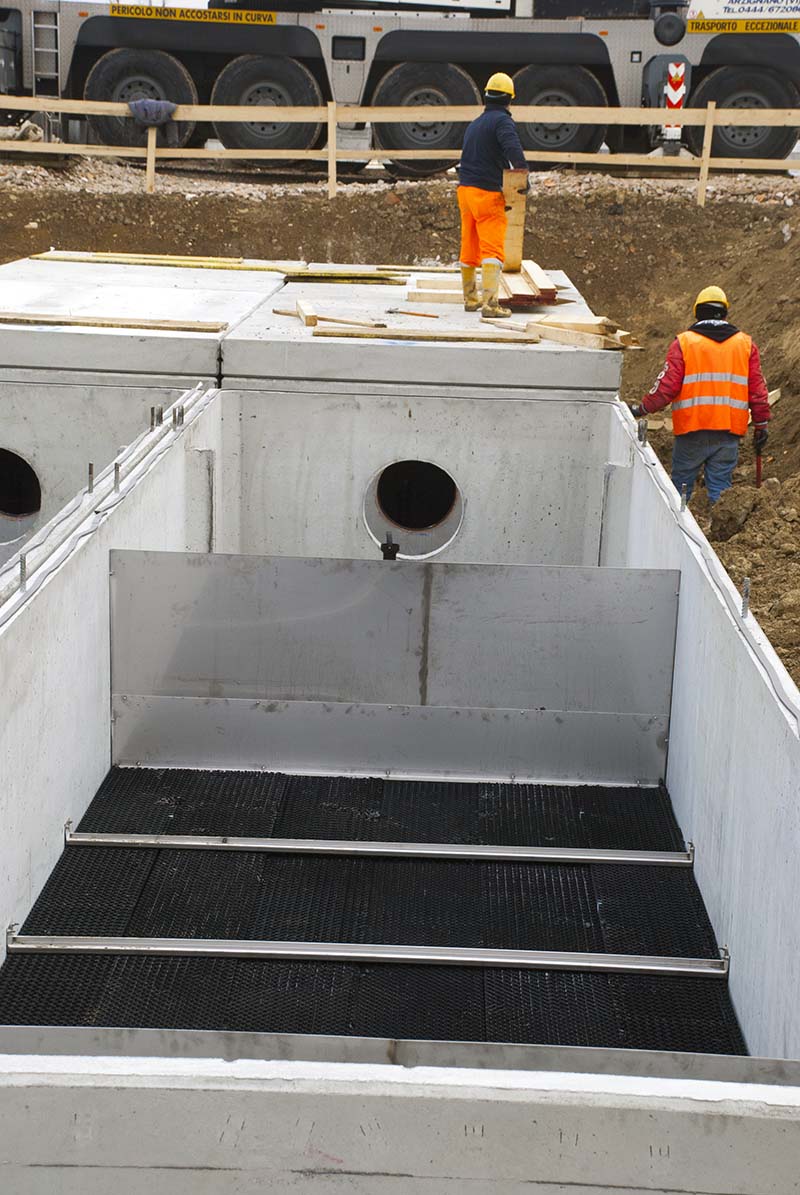 L’impianto è dotato di deflettori di flusso, galleggiante di chiusura di sicurezza, sistema di estrazione dell’olio accumulato, barriera filtrante coalescente.